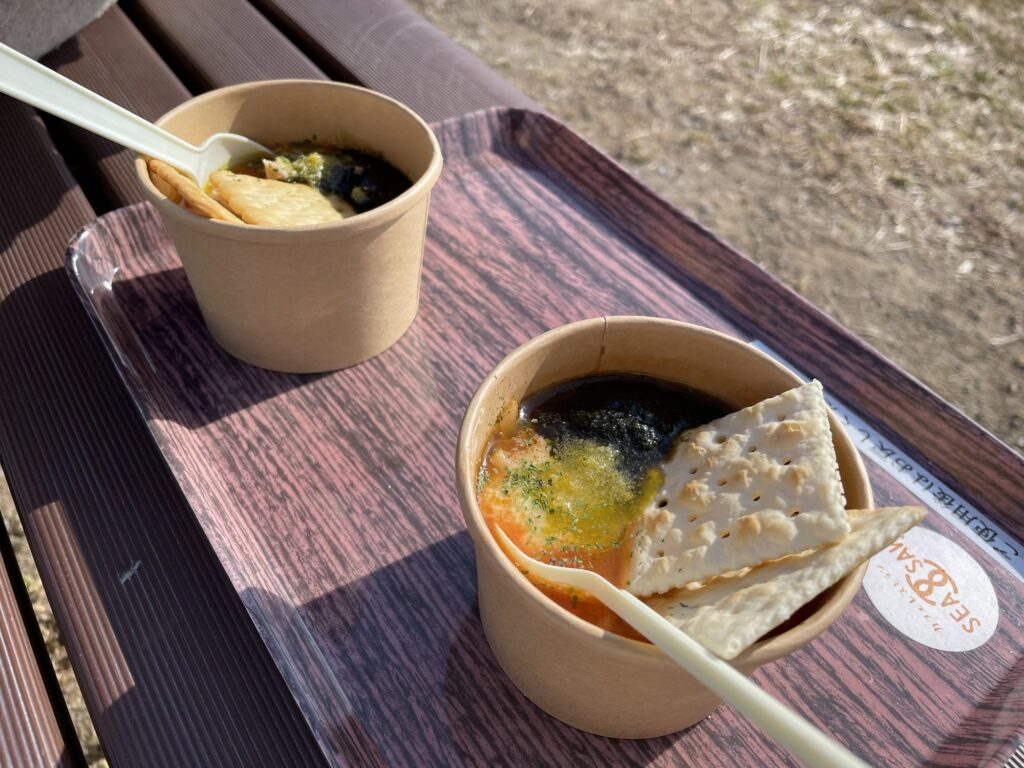 そんなわけでまずは本命、SEA SAWさんの濃厚海苔ミネストローネ!今年は宮城野高校とのコラボらしい。